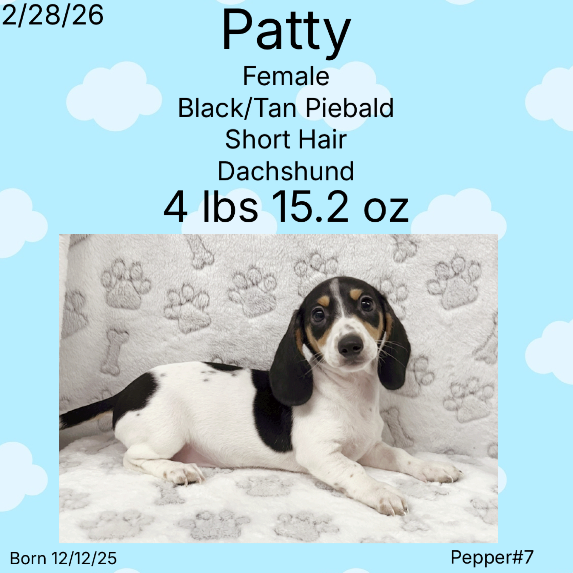 Color: Black/Tan Piebald